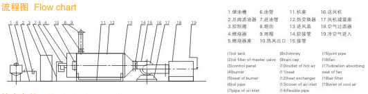 燃料通过燃烧器燃烧,产生高温燃气。并借助具有强化换热措施的热风炉将高温燃气的热量传导给被加热的空气,高温燃气经热量散发后温度降低至250℃后排到大气中。需加热的空气通过选配的鼓风机强送入热风炉,吸热后温度升至额定值从热风出口处送出,当热风温度达到额定温度上限时,燃烧器会自动停止燃烧或自动转为小火焰燃烧,当热风温度降低到额定下限温度时,燃烧器又会重新点燃运行或转为大火燃烧,升温的速度可以调节进风阀的开度来实现。